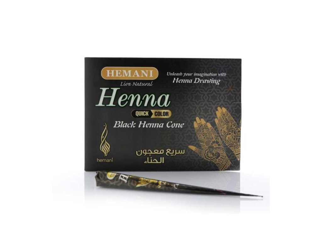 Hemani Herbal Henna Cone Black je 100% přírodní gelová henna vyrobená z kvalitních listů hennového keře, navržená pro snadnou aplikaci a rychlý výsledek. Díky praktickému kuželovému balení je ideální pro precizní kresbu detailních vzorů a okamžité získání tmavé černé barvy.
