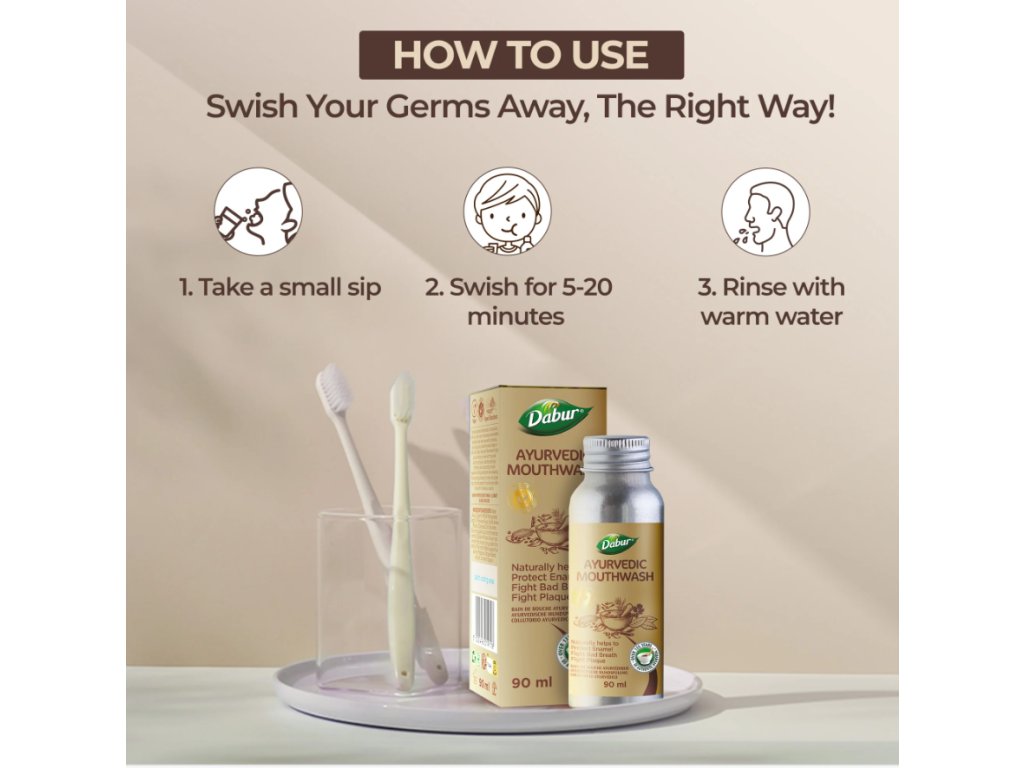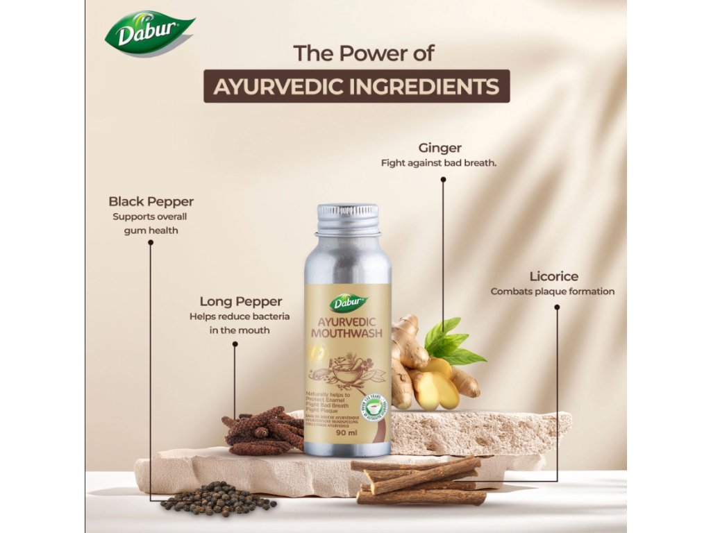 Dabur ájurvédska ústní voda s hřebíčkem, zázvorem a černým pepřem poskytuje tradiční ayurvédskou péči pro zdravé zuby a dásně. Tento 90ml přírodní přípravek kombinuje sílu osvědčených ayurvédských ingrediencí, které podporují zdraví dásní, chrání zuby a přispívají ke svěžímu dechu.